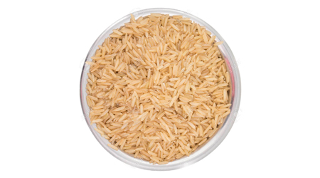 Brown rice is fiber-filled and nutrient-rich rice, and is a good source of magnesium, phosphorus, selenium, thiamine, niacin, vitamin B6, and manganese. The process that produces brown rice removes only the outermost layer, the hull, of the rice kernel and is the least damaging to its nutritional value.