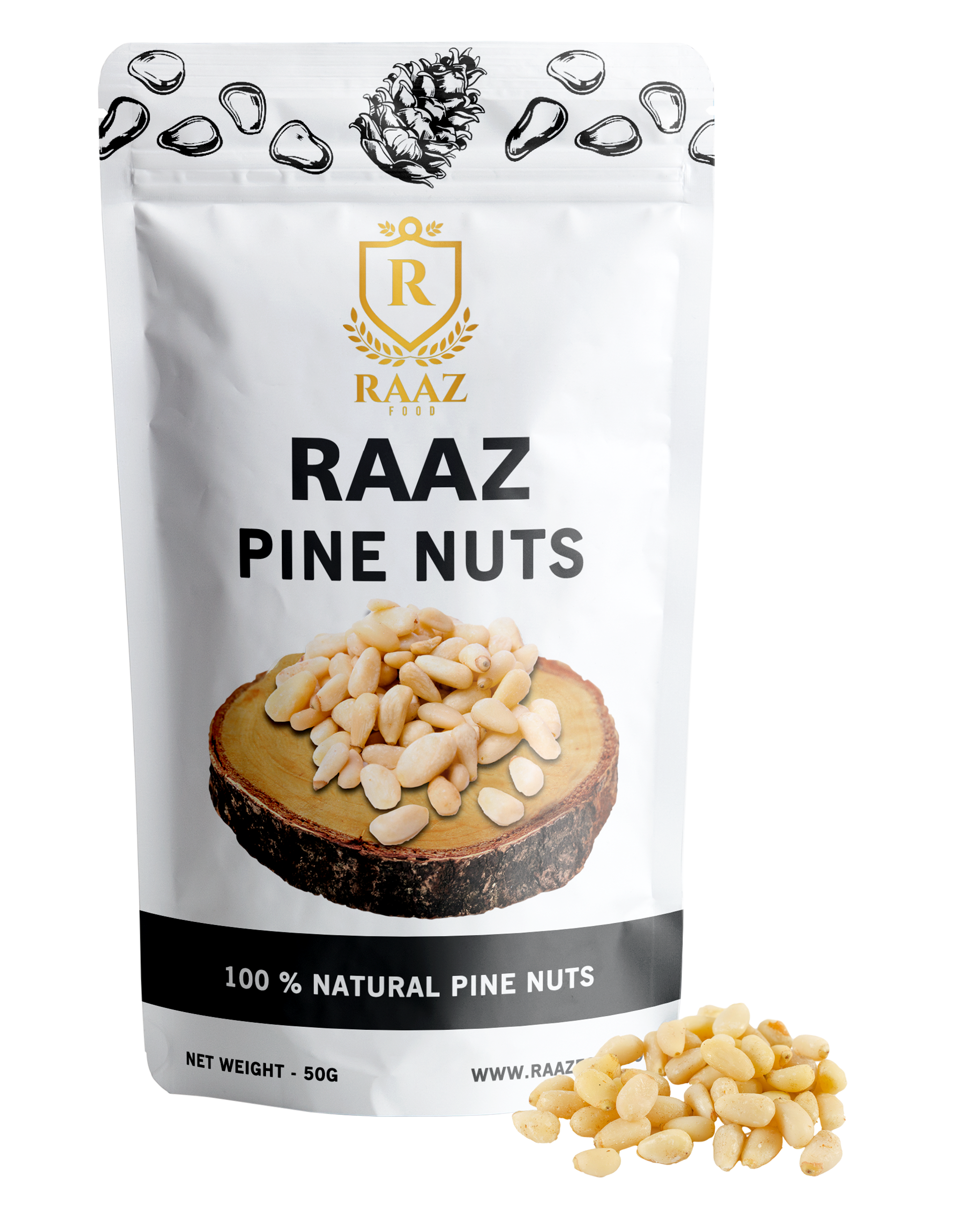 Pine nuts feature tough dark-brown outer coat or shell. Inside, its edible kernel has cream white, delicate buttery flavor, and sweet taste.